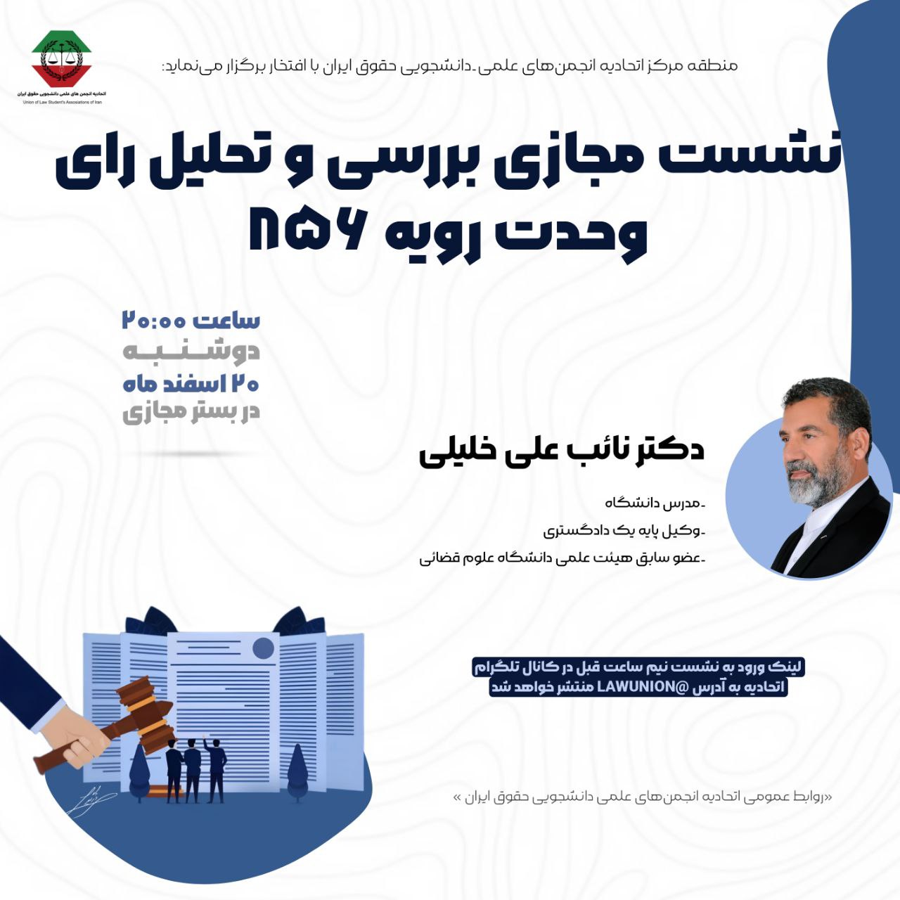 بنابر معرفی مختصری که از نهاد “اتحادیه انجمنهای علمی_دانشجویی” ارائه شد، در بابِ “اتحادیه انجمنهای علمی_دانشجویی حقوق ایران” باید بیان داشت که پس از تصویب اساسنامه با حضور اکثریت، در تاریخ ۲۳ اسفند ماه ۱۴۰۱ با حضور نمایندگان ۲۶ انجمن علمی حقوق از دانشگاههای سراسر کشور تاسیس گردید. این اتحادیه در حال حاضر متشکل از بیش از ۶۵ انجمن علمی حقوق، حقوق عمومی، حقوق خصوصی، حقوق جزا و جرم شناسی، حقوق بین الملل، حقوق مالکیت فکری است.