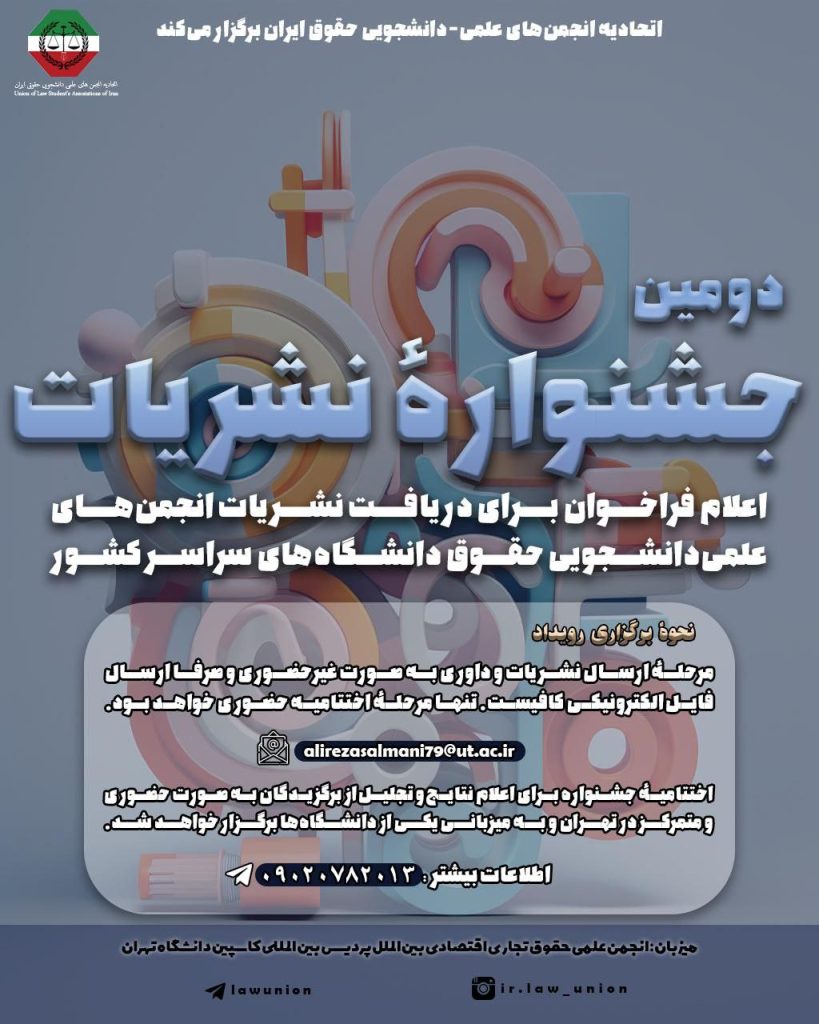 🔶منطقه شرق اتحادیه انجمن های علمی دانشجویی حقوق ایران برگزار مینماید: 📚موضوع: نگاهی بر ملی شدن صنعت نفت از منظر قانونی و حقوقی 🧑🏻🏫با تدریس جناب آقای دکتر رضا تهرانی دکتری مدیریت قراردادهای بین المللی نفت و گاز 📆تاریخ برگزاری:…
