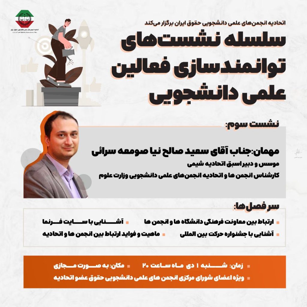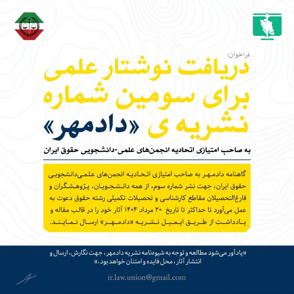 «به نام خداوند عادل» اتحاديه انجمن های علمی_دانشجویی حقوق ایران برگزار میکند: 💠 دومین جشنواره نشریات 🔸اعلام فراخوان برای دریافت نشریات انجمنهای علمی دانشجویی حقوق دانشگاههای سراسر کشور 📌 این رویداد فرصتی است برای دیده شدن زحمات تحریریههای دانشجویی،…